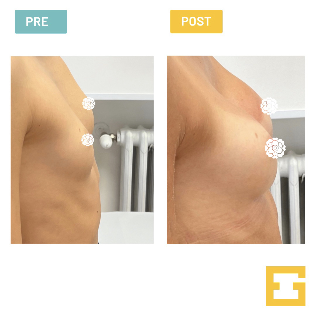 Leggero gonfiore e possibili ecchimosi che si risolvono spontaneamente. Importante dormire in posizione supina nei primi giorni per evitare che le protesi si possano spostare